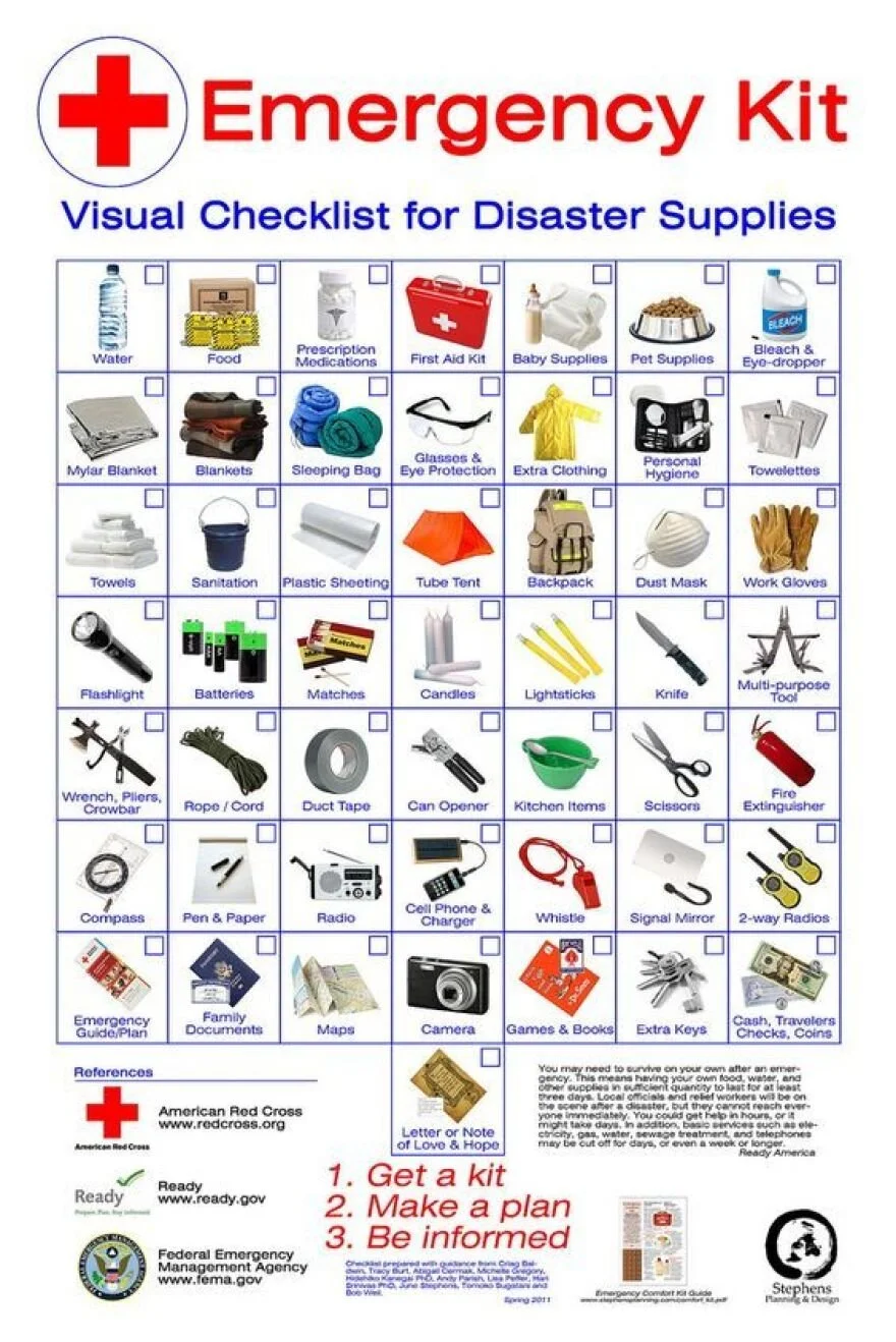 Store emergency supplies in your home, including a first aid kit, canned food (with a manual opener), bottled water, flashlight, battery-operated radio and any essential prescription drugs.